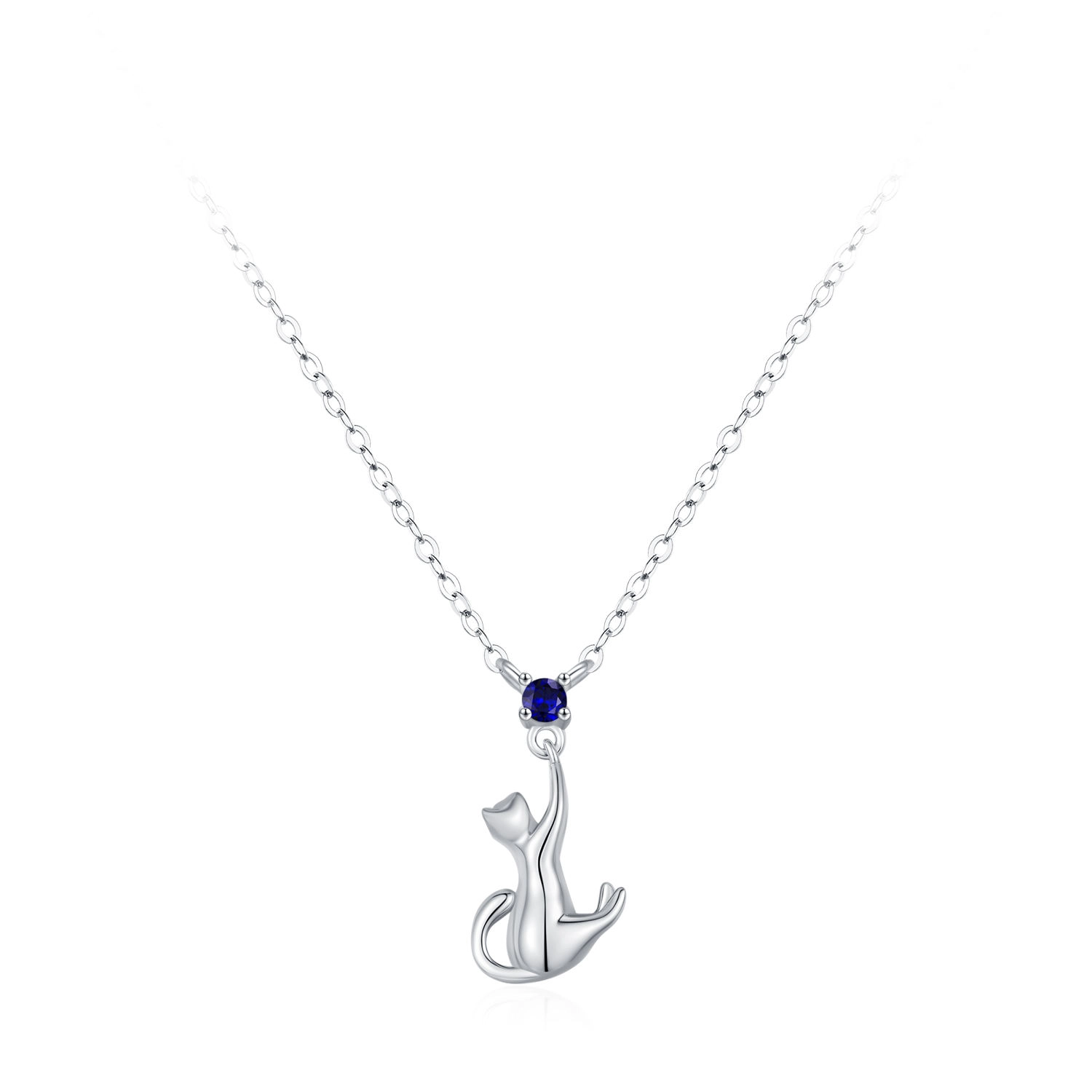 Cute Cat Pendant Necklace Blue Zircon 925 Sterling Silver