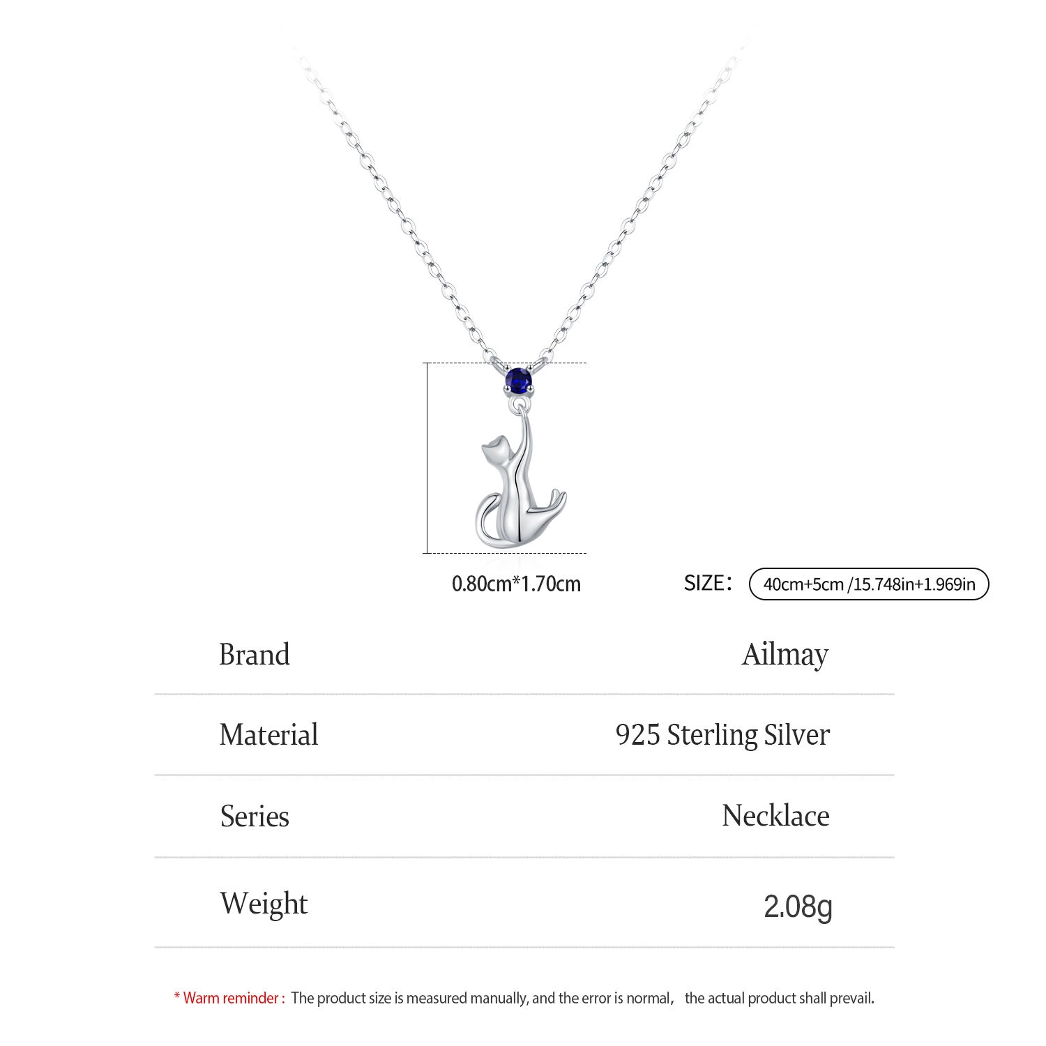 Be the first to review “Cute Cat Pendant Necklace Blue Zircon 925 Sterling Silver”