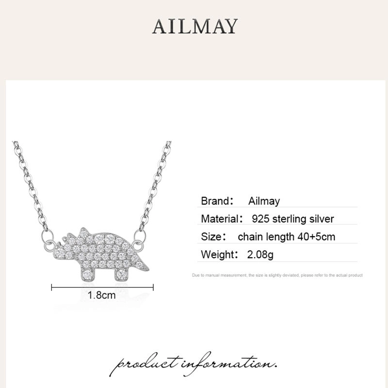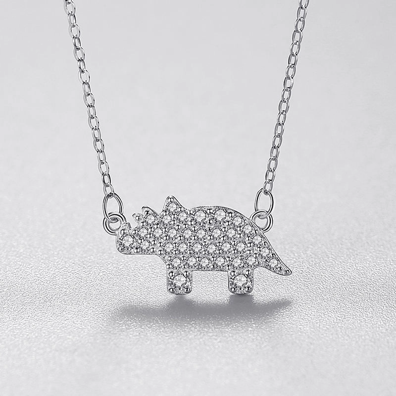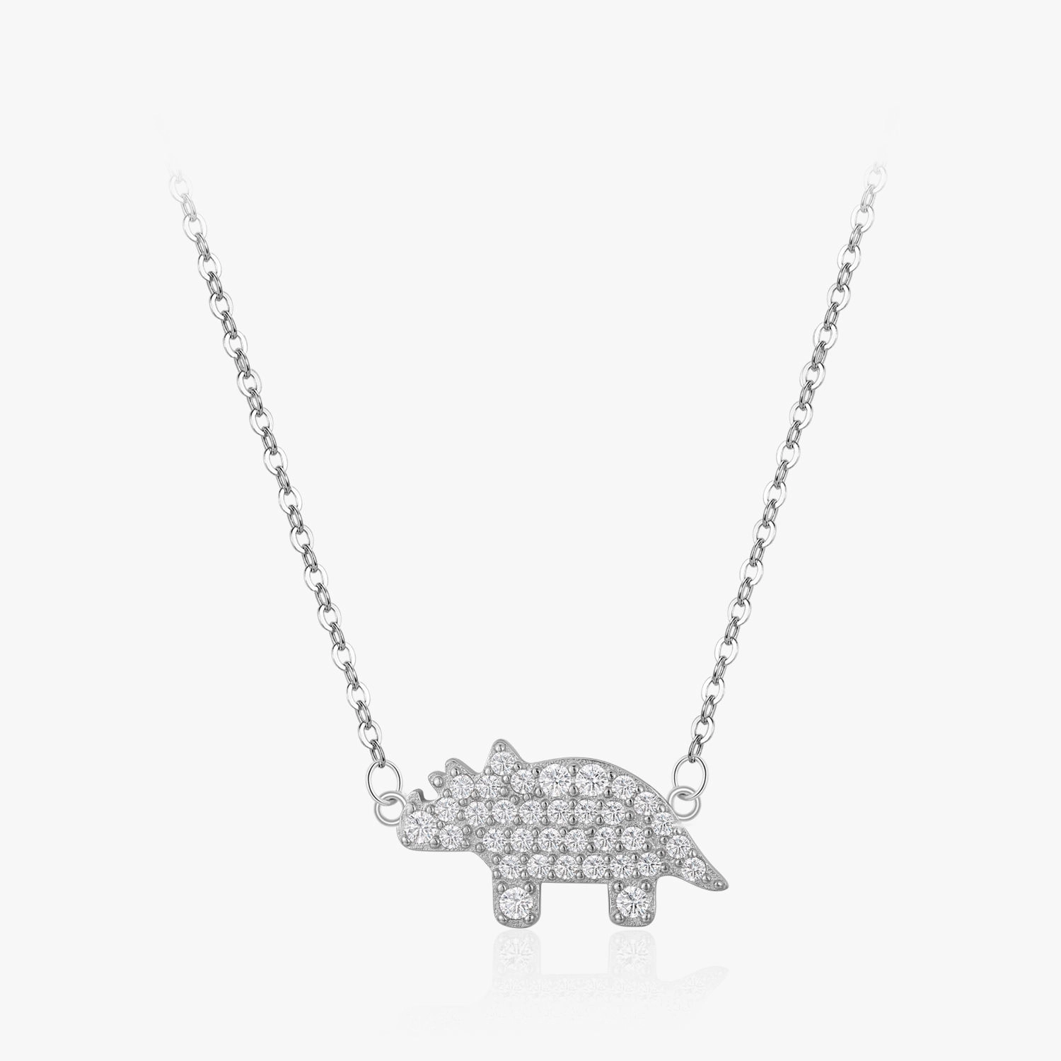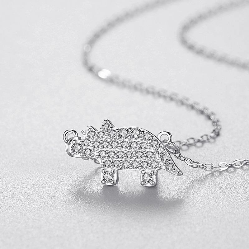 Lovely Rhinoceros Cartoon Animal Zircon Necklace Sterling Silver