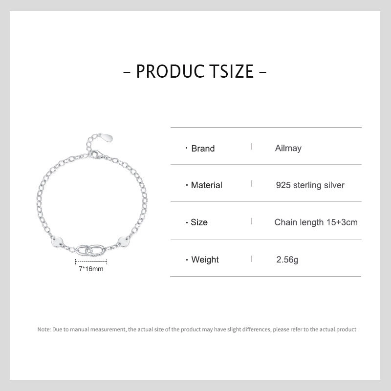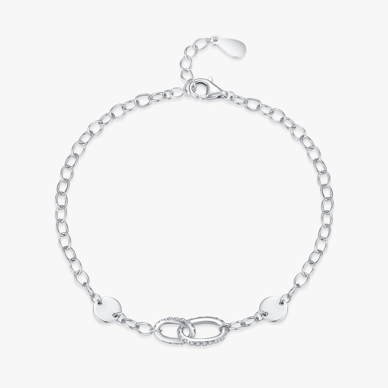 Simple Charm Zirconia Double Ring Bracelet Chain Link 925 Sterling Silver