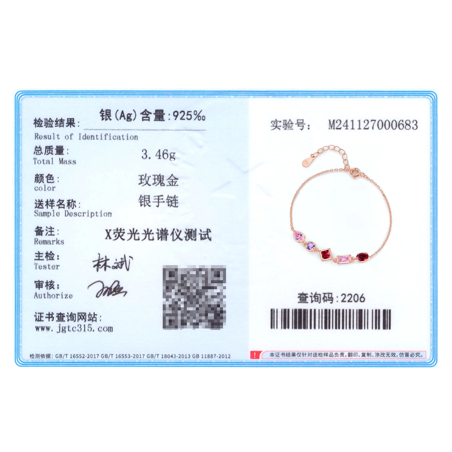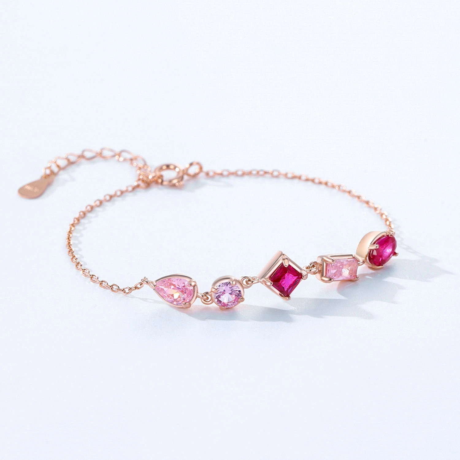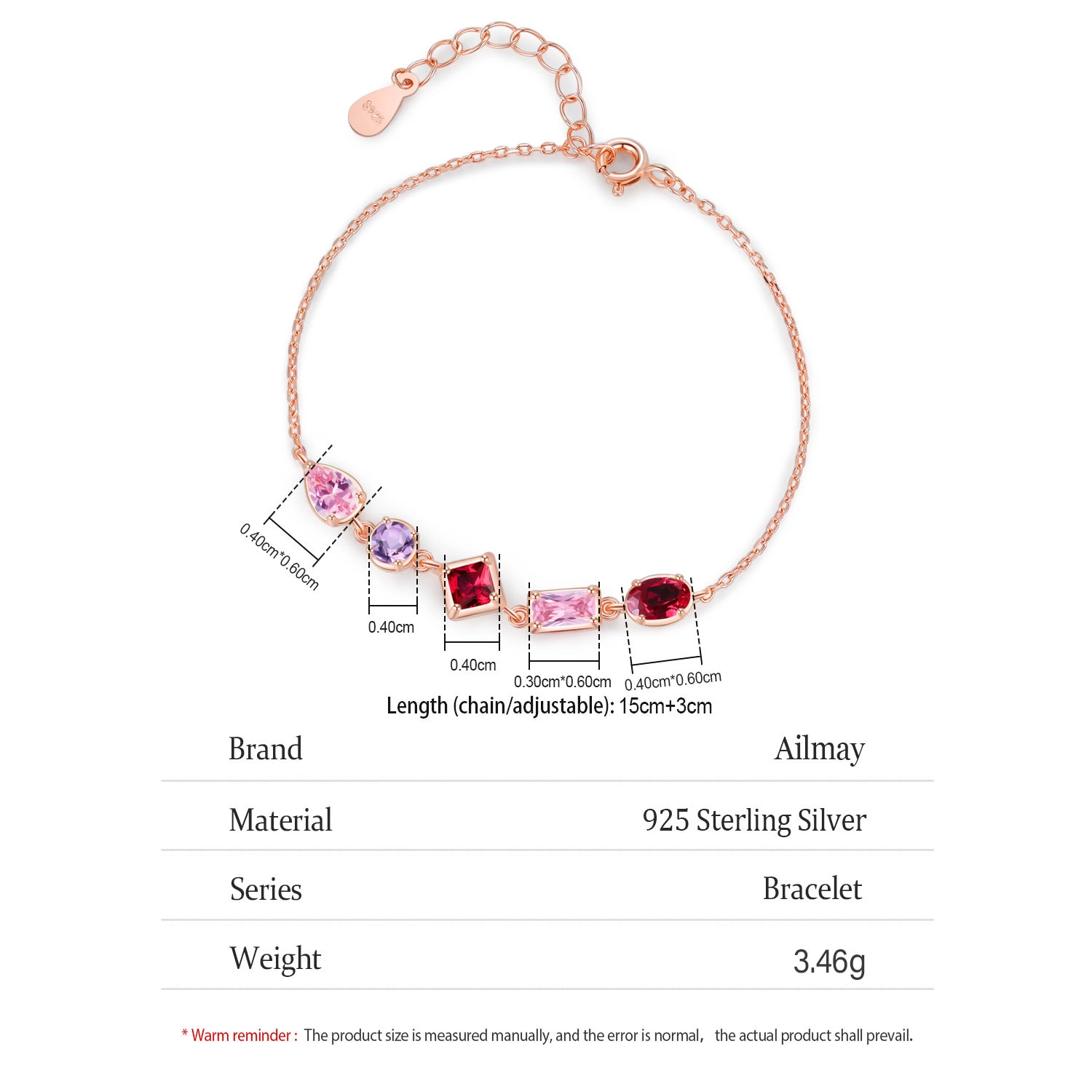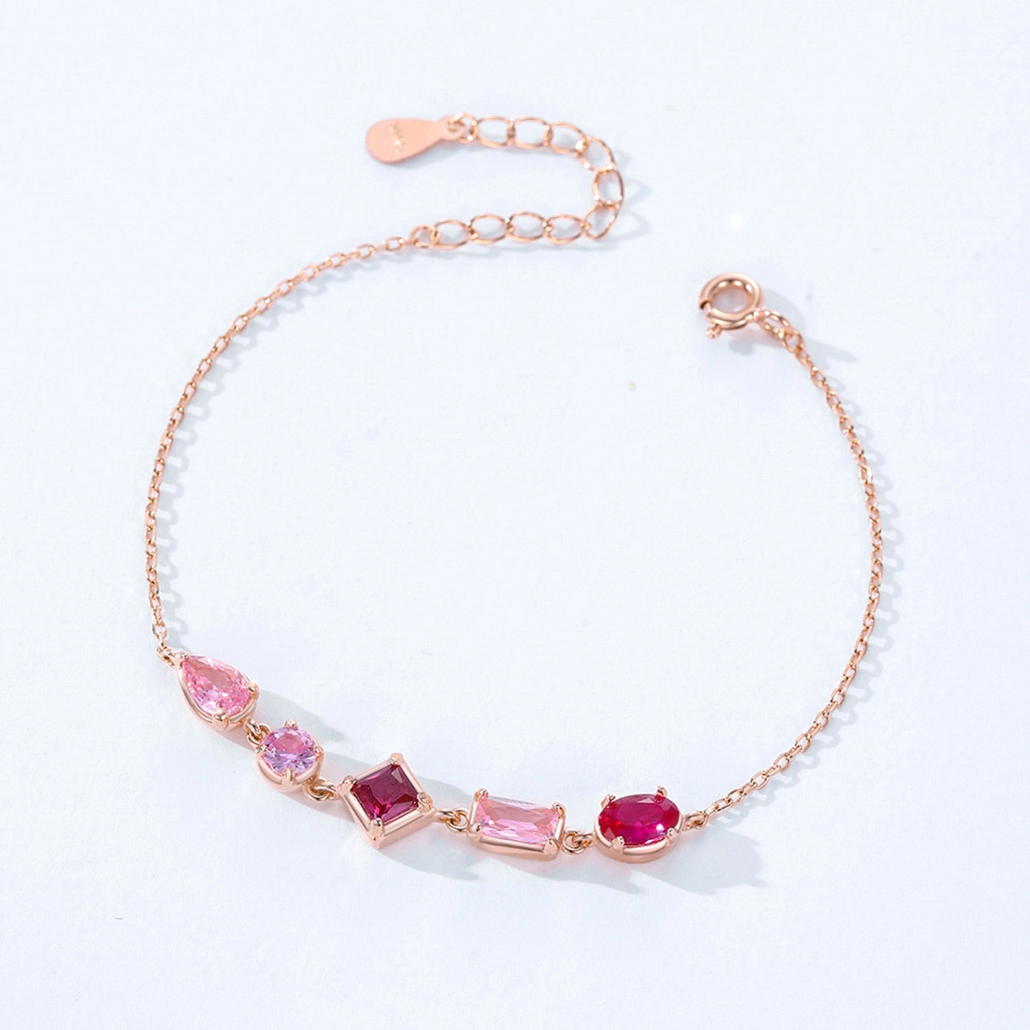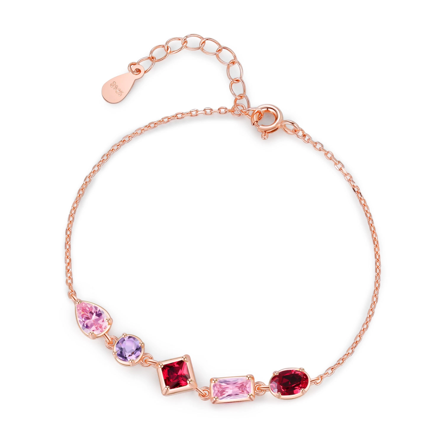 Sweet Pink Purple Geometric Design Chain Bracelet925 Sterling Silver